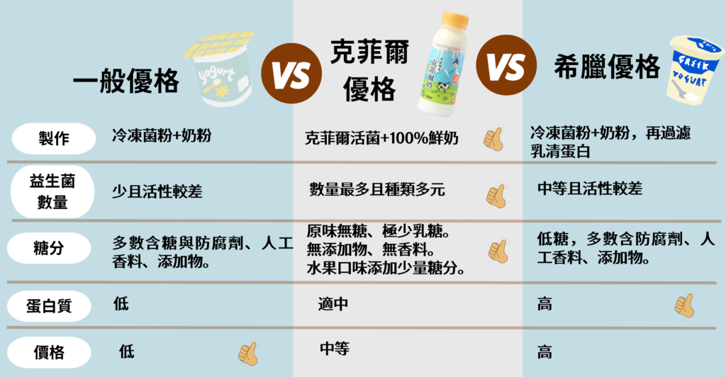 一般優格 vs. 克菲爾優格 vs. 希臘優格